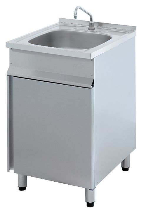 Рукомойник ATESY ВРН-600 используется на предприятиях общественного питания и торговли для мытья рук персонала. Ванна выполнена из нержавеющей стали AISI 304 толщиной 0,8 мм, боковые стенки и передняя распашная дверца тумбы - из нержавеющей стали AISI 430, задняя стенка тумбы - из оцинкованной стали толщиной 1,2 мм, опорные ножки - из нержавеющей трубы диаметром 50 мм.