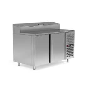 Холодильный стол POLAIR TM2ENvt-G предназначен для хранения продуктов и обработки ингредиентов в пиццерии и ресторане итальянской кухни. Модель оснащена интегрированной витриной и крышкой, которая в режиме работы фиксируется в открытом положении для удобства персонала. Обшивка корпуса и столешница выполнены из нержавеющей стали, термоизоляция корпуса и витрины - из пенополиуретана.