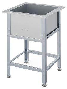 Моечная ванна ATESY ВСМ-Б-1.530-02 серии Бюджет используется на предприятиях общественного питания и торговли для мытья столовой и кухонной посуды, инвентаря, овощей и фруктов, а также для оттайки замороженных пищевых продуктов. Каркас выполнен из профиля из оцинкованной стали толщиной 1,2 мм, ванна - из нержавеющей стали AISI 430 толщиной 0,7 мм, опоры регуляторов высоты ножек - из нержавеющей стали.